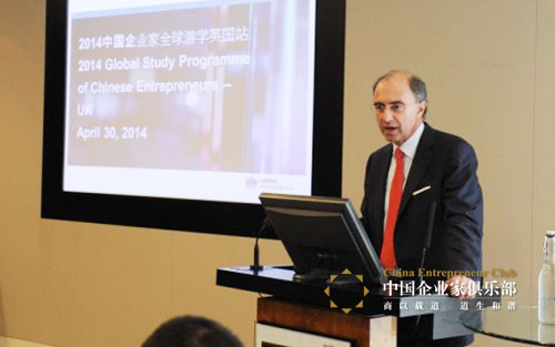 伦敦证券交易所(London Stock Exchange, LSE)是世界四大证券交易所之一,是欧洲最大的证劵交易所,也是世界上历史最悠久的证券交易所之一,目前有来自63个国家和地区的约500家外国公司在伦敦上市和交易,伦敦交易所交易的外国股票远超过英国本土股票。2014年4月30日,由中国企业家俱乐部发起的“中国企业家全球游学”英国班的企业家学员们走进伦敦证券交易所,与其集团首席执行官罗睿铎(Xavier Rolet)进行了会面。罗睿铎先生为中国企业家们讲述了国际投资市场的发展趋势,并为中国企业踏入国际资本市场提出了建议: