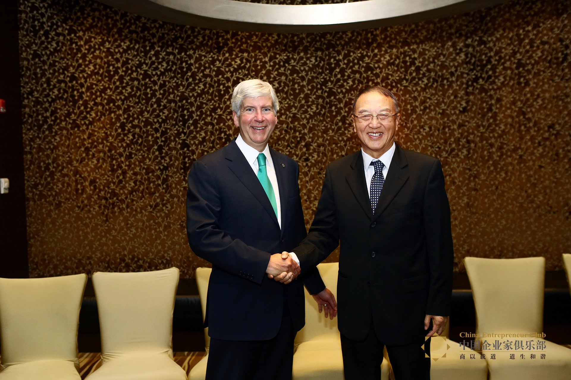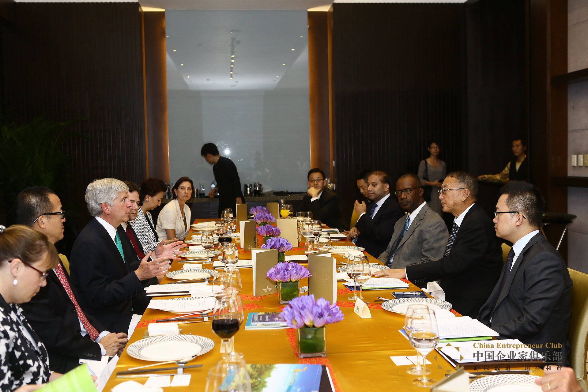 2013年9月10日,美国密歇根州州长里克•斯奈德访京首日,即与中国企业家俱乐部的理事代表举行了一场小型晚餐会。斯奈德先生于2011年当选密歇根州州长,此前曾担任美国捷威(Gateway)公司CEO。由于和中国企业家们有着相同的背景,因此晚餐会在轻松融洽地氛围中展开。