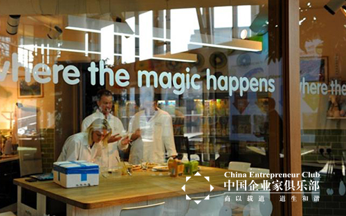 纯真饮料所在的办公楼“水果塔楼”,被称为英国最酷办公地点之一。它坐落在伦敦古老运河旁,水果塔楼外形古朴,内在炫酷:广阔的开放空间里,装饰着草坪、野餐椅,甚至英国传统红色电话亭,这样的氛围鼓励了所有员工走出工作隔间进行跨部门交流。开放空间还拥有充足的厨房空间,员工们可以一边交流厨艺,一边享受无限量供应的纯真思慕雪饮料。公司的核心研发部门也开放地坐落在厨房旁边,研发人员就在透明的巨大玻璃窗后工作,而玻璃窗上赫然写着几个大字:“见证奇迹的地方“。